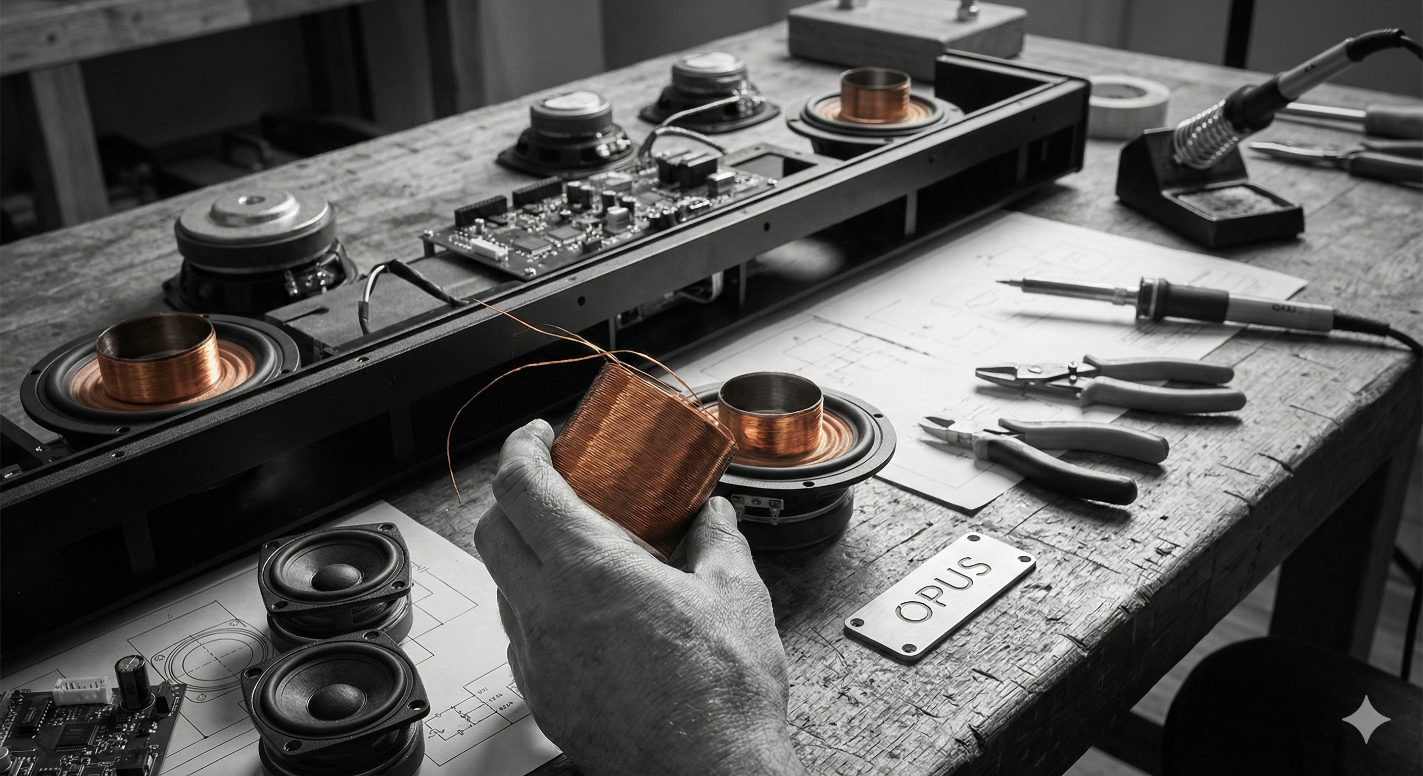 The Narrative: At Opus Hi·Fi, we began with a single, uncompromising question: Why must the most beautiful living spaces be cluttered by the largest audio equipment? For decades, the industry accepted a trade-off: you could have a sleek, minimalist home, or you could have a world-class cinematic experience. You could not have both. We founded Opus to shatter that compromise. Our Engineering Philosophy: We do not build "speakers." We engineer Sonic Architecture. By integrating advanced aerospace-grade materials with high-density digital processing, we’ve managed to fit 1000W of raw power and a 17-driver array into a chassis that measures only a few inches deep.